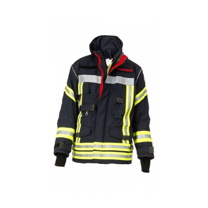 • Leuchtrotes Signalklettband an der Frontreissverschlussleiste zur besseren Erkennbarkeit einer nicht geschlossenen JackeSchulterpolsterung für Atemschutzgerät