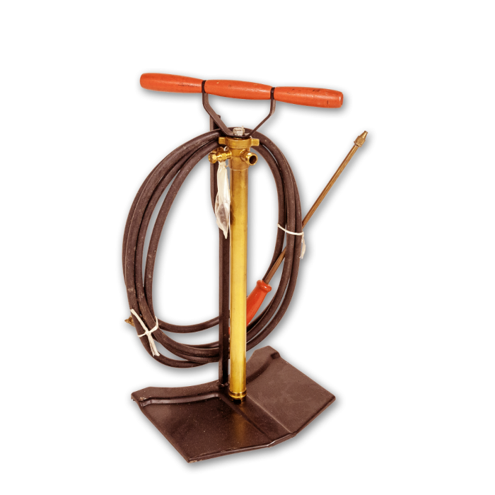 Pompe à piston en laiton avec tuyau de 5 m et buse à jet plein.